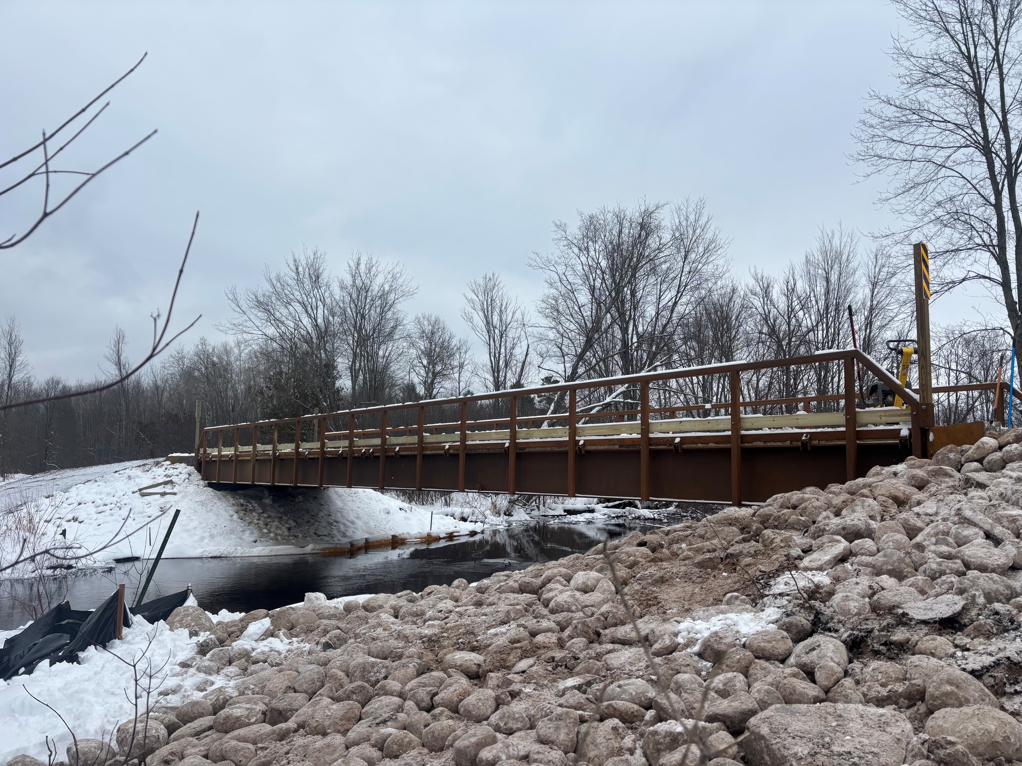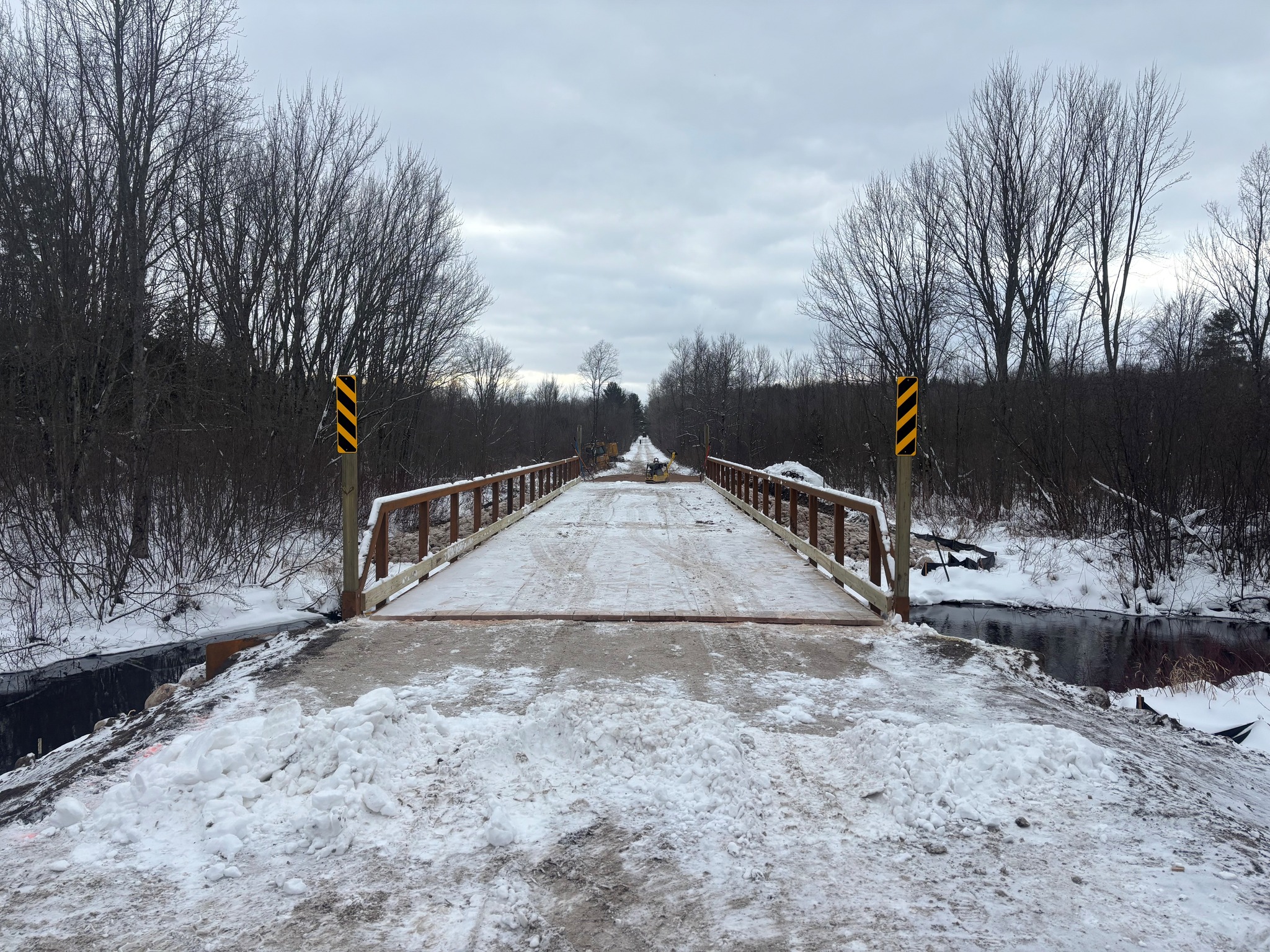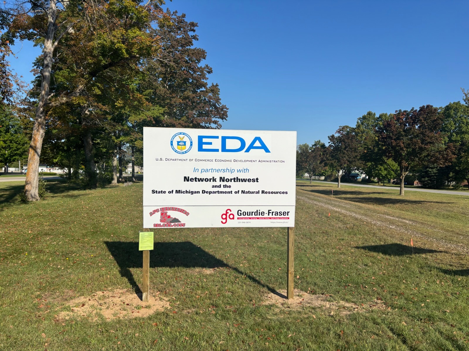 Networks Northwest and the Michigan Department of Natural Resources received funding from the U.S. Economic Development Adminstration for improvements to the trail systems near the Village of Copemish and the Village of Thompsonville in Manistee County and Benzie County. The $1.25 million project included widening and resurfacing 3.21 miles of railroad grade with a gravel trail surface to extend the Betsie Valley Trail from Thompsonville to Copemish. This trail improvment project included new signage, a new trailhead parking lot, and drainage improvements. The project further included the installation of a new snowmobile bridge over Bear Creek on Snowmobile Trail LP3 in Manistee County. The creek crossing has been closed for years, since the removal of the old railroad bridge. The new 14' wide by 80' long prefabricated bridge from Cadillac Fabrication created a direct route on Trail LP3 from Copemish to Kaleva in Manistee County. GFA worked with provided full engineering design, permitting, sureying and construction services for the project that was completed by AJ's Excavating LLC.