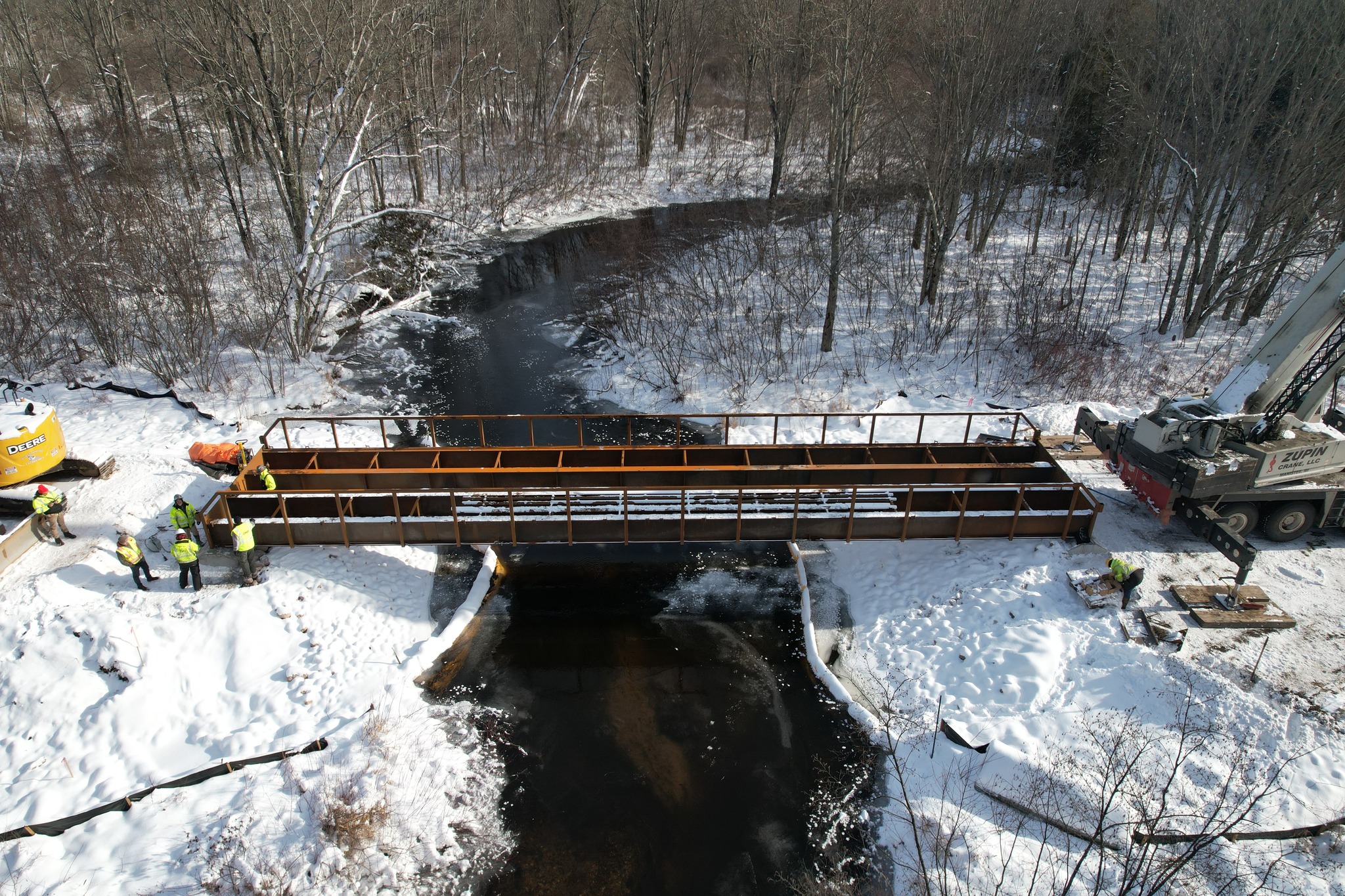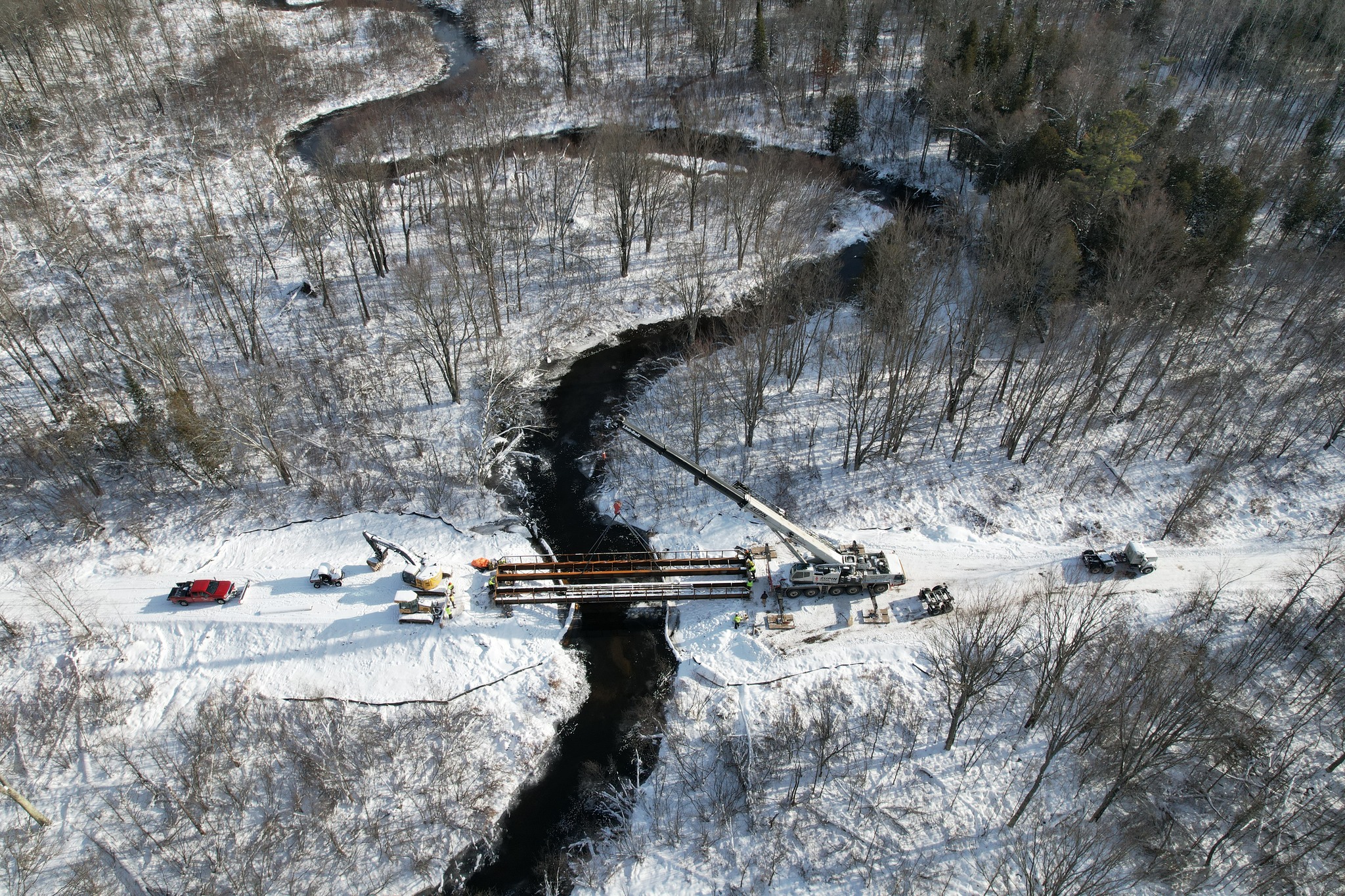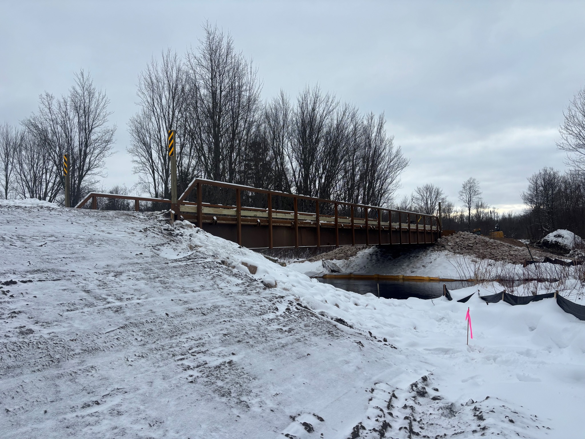 Networks Northwest and the Michigan Department of Natural Resources received funding from the U.S. Economic Development Adminstration for improvements to the trail systems near the Village of Copemish and the Village of Thompsonville in Manistee County and Benzie County. The $1.25 million project included widening and resurfacing 3.21 miles of railroad grade with a gravel trail surface to extend the Betsie Valley Trail from Thompsonville to Copemish. This trail improvment project included new signage, a new trailhead parking lot, and drainage improvements. The project further included the installation of a new snowmobile bridge over Bear Creek on Snowmobile Trail LP3 in Manistee County. The creek crossing has been closed for years, since the removal of the old railroad bridge. The new 14' wide by 80' long prefabricated bridge from Cadillac Fabrication created a direct route on Trail LP3 from Copemish to Kaleva in Manistee County. GFA worked with provided full engineering design, permitting, sureying and construction services for the project that was completed by AJ's Excavating LLC.