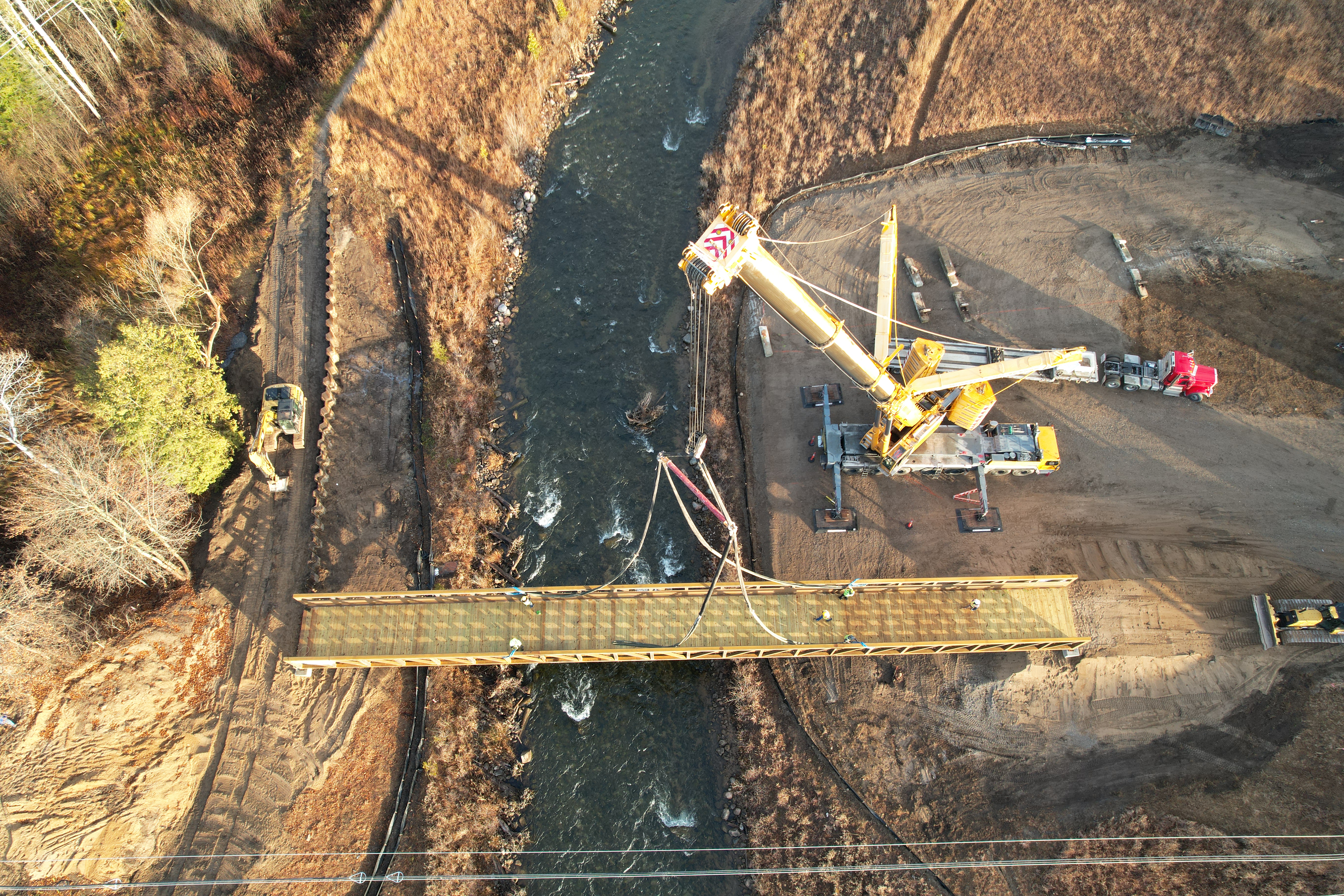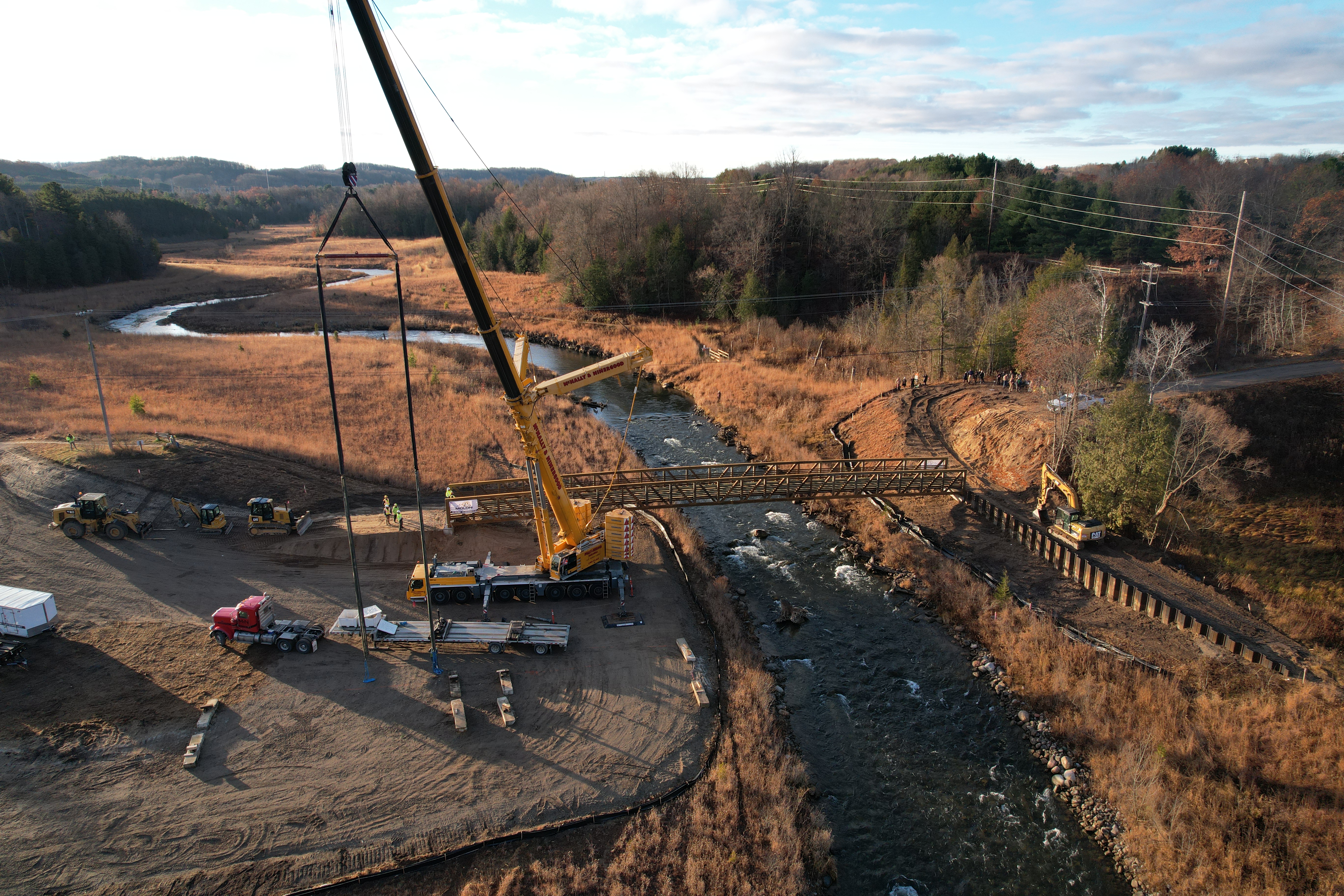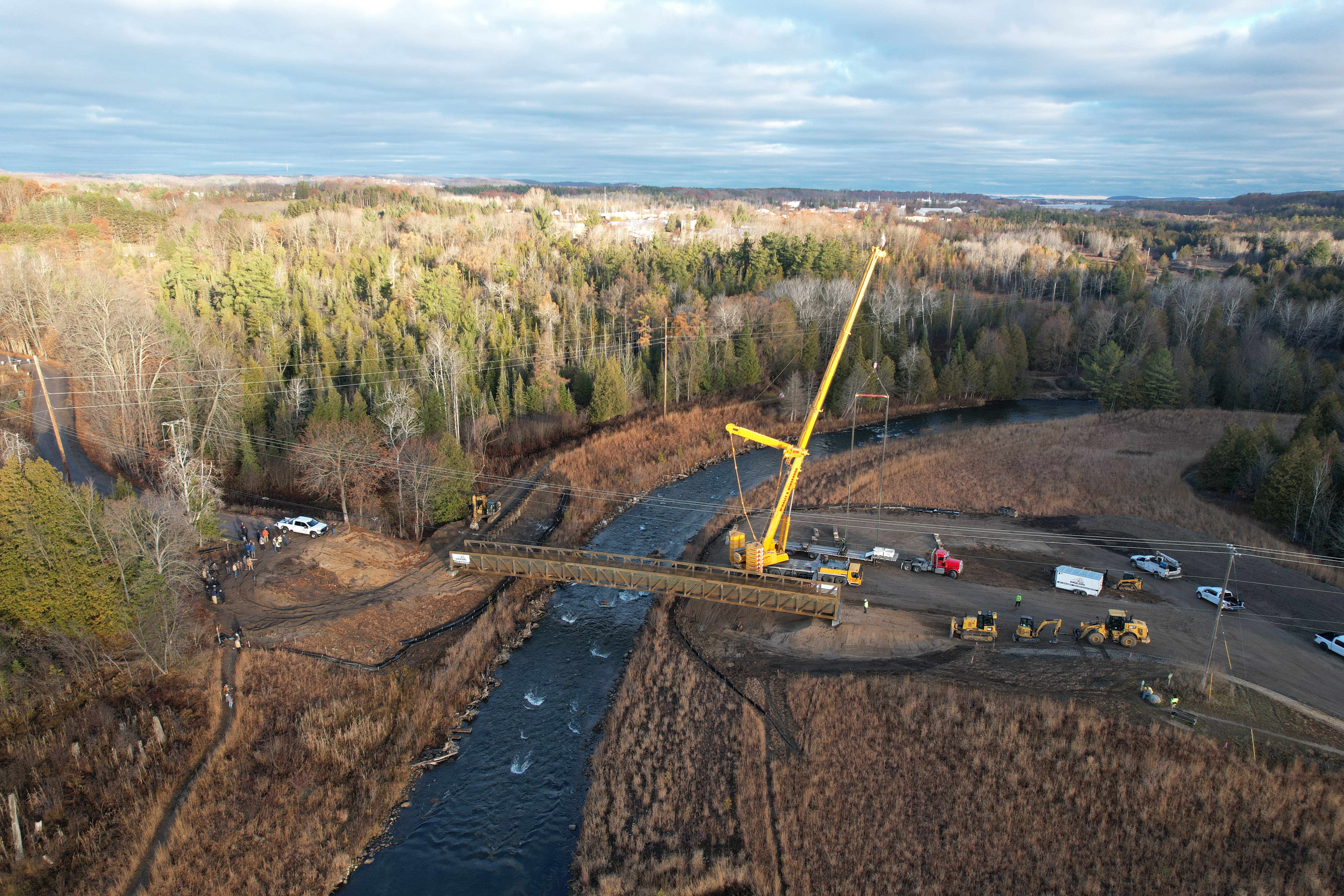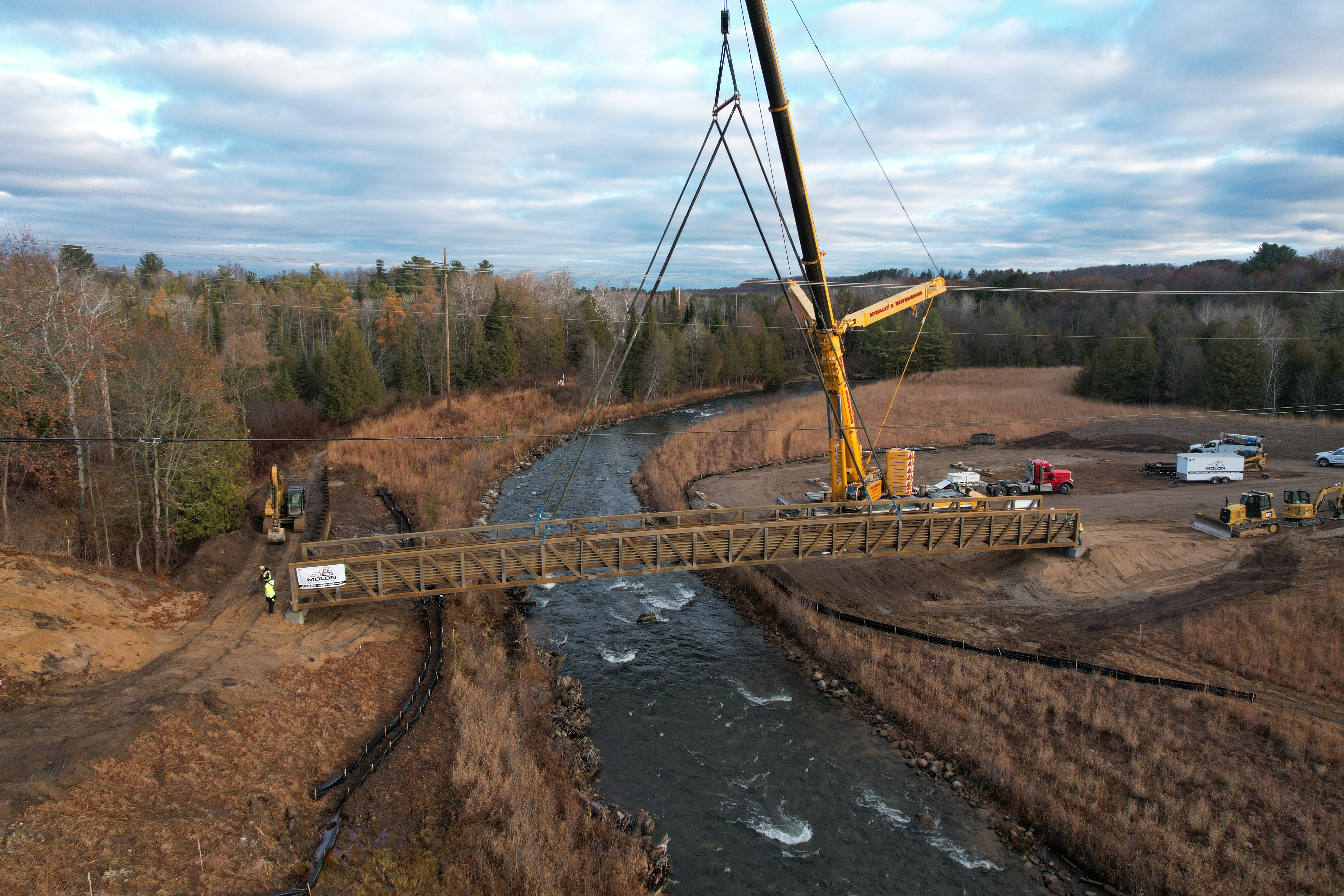 Since the removal of the Sabin Dam and the creation of the Grand Traverse Natural Education Reserve in Grand Traverse County, the Grand Traverse Conservation District (GTCD) had long visioned to connect the trail systems on the east and west side of the Boardman River. GFA worked with the GTCD to engineer a new pedestrian bridge crossing that would connect the trail create a 41 mile loop of local trails that include the Boardman Lake Loop Trail, East Creek Reserve Trails, Brown Bridge Quiet Area, Muncie Lakes Pathway, North Country Trail, VASAPathway, and the TART. The project - deemed the Ottaway Crossing - included a 160-foot long by 12-foot wide pre-engineered pedestrian bridge from Bridge Brothers, concrete bridge abutments, afton stone trails, including an acceible path from a new parking lot on the east side of the river, boulder retaining walls, sheet pile, and assocaited work. As the bridge was constructed in the location of a historic dam, construction required critical inspection and testing services to ensure quality soil and materials. GFA further provided full construction services and construction staking for this project. Work was compelted by Molon Excavating in 2026.